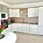 La cocina bien equipada cuenta con servicio de tetera/cafetera, un hervidor eléctrico, una nevera y un horno. La parada de autobús más cercana es Bregi, situada a tan solo 250 metros. Los huéspedes pueden relajarse en la piscina privada, además de disfrutar de las instalaciones de sauna. Los huéspedes tienen acceso a parque acuático y jardín, así como la posibilidad de practicar windsurf, senderismo y ciclismo.